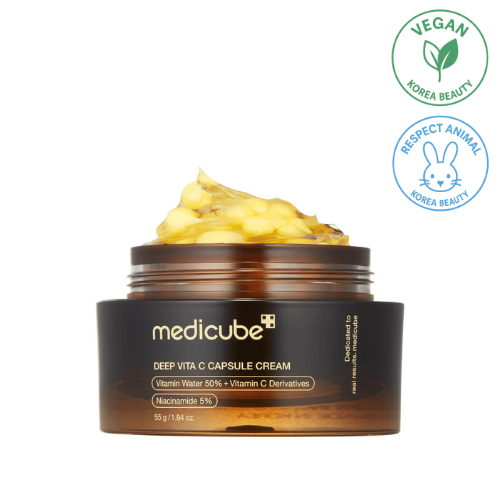 Cette crème de Medicube contient de la vitamine C encapsulée, de la niacinamide, de l'acide hyaluronique et de la caféine pour éclaircir et hydrater la peau.