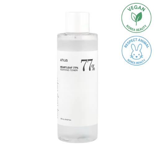 Le toner Anua contient de l'extrait de Houttuynia Cordata (77%), du panthénol et de la bétaïne pour leurs effets apaisants, hydratants et protecteurs de la barrière cutanée.