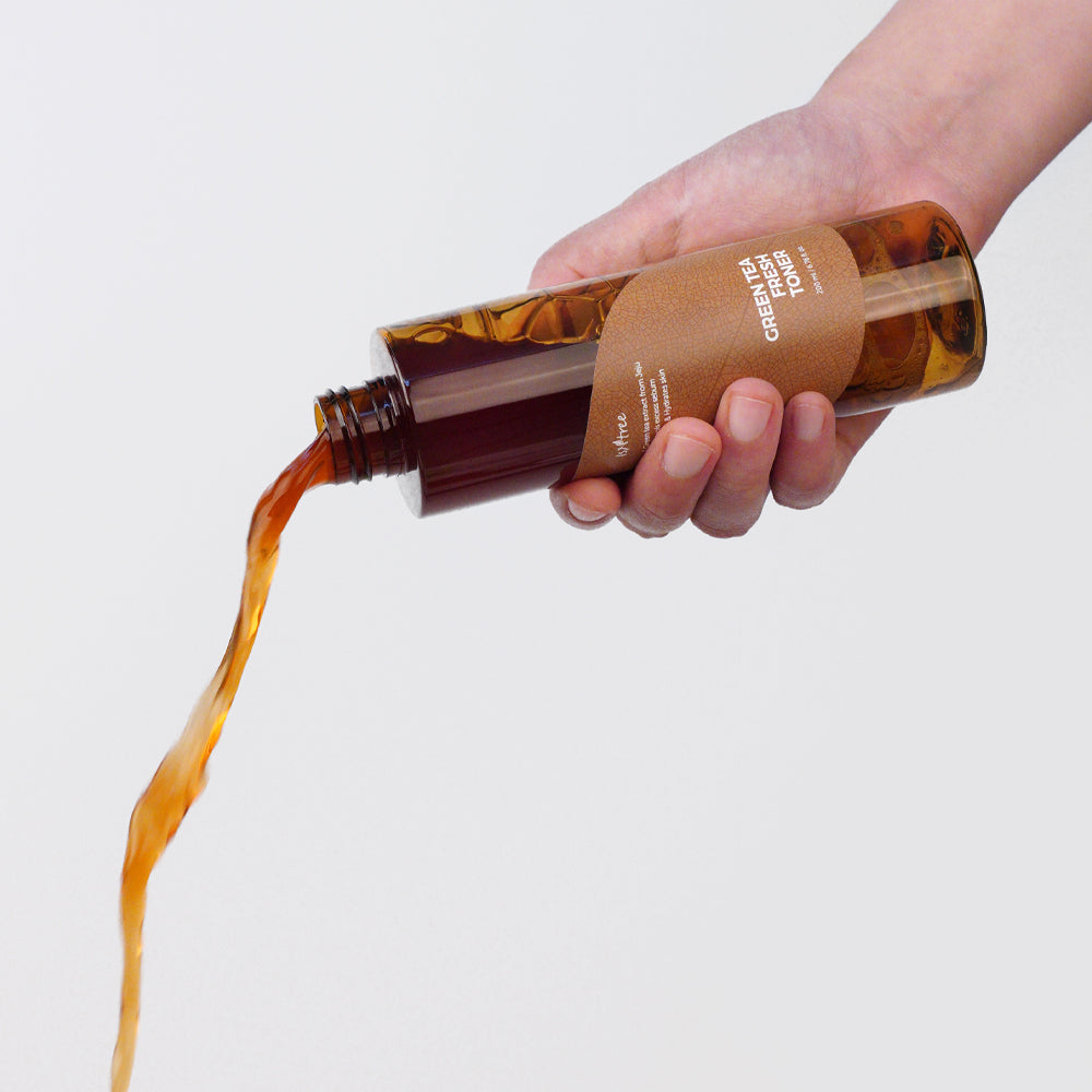 Ce toner de Isntree contient 80% d'extrait de thé vert, du panthénol et de l'acide hyaluronique pour contrôler le sébum et hydrater la peau.